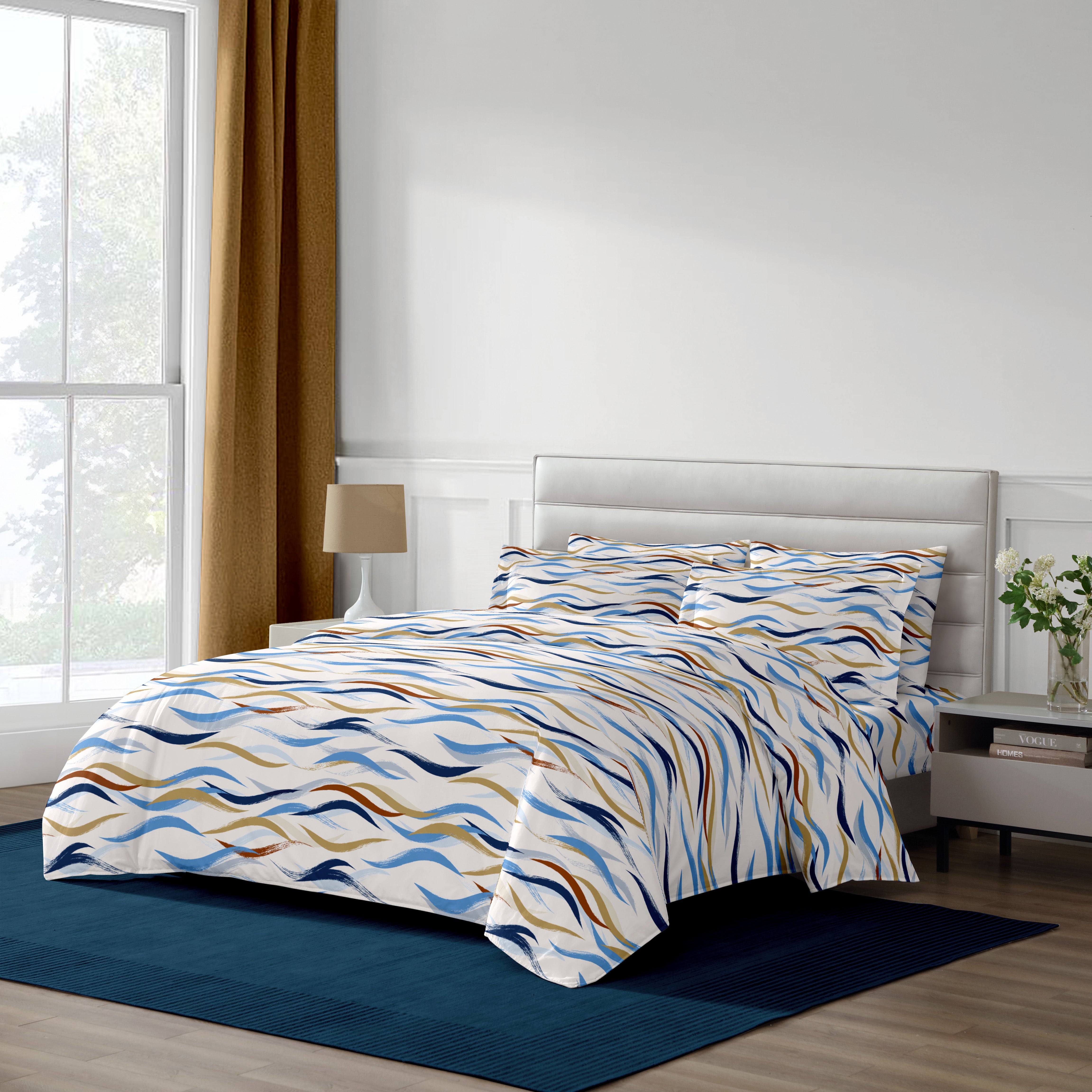 Better Bed Collection 300TC Flowy Waves - Blue Premium Sateen Duvet Set