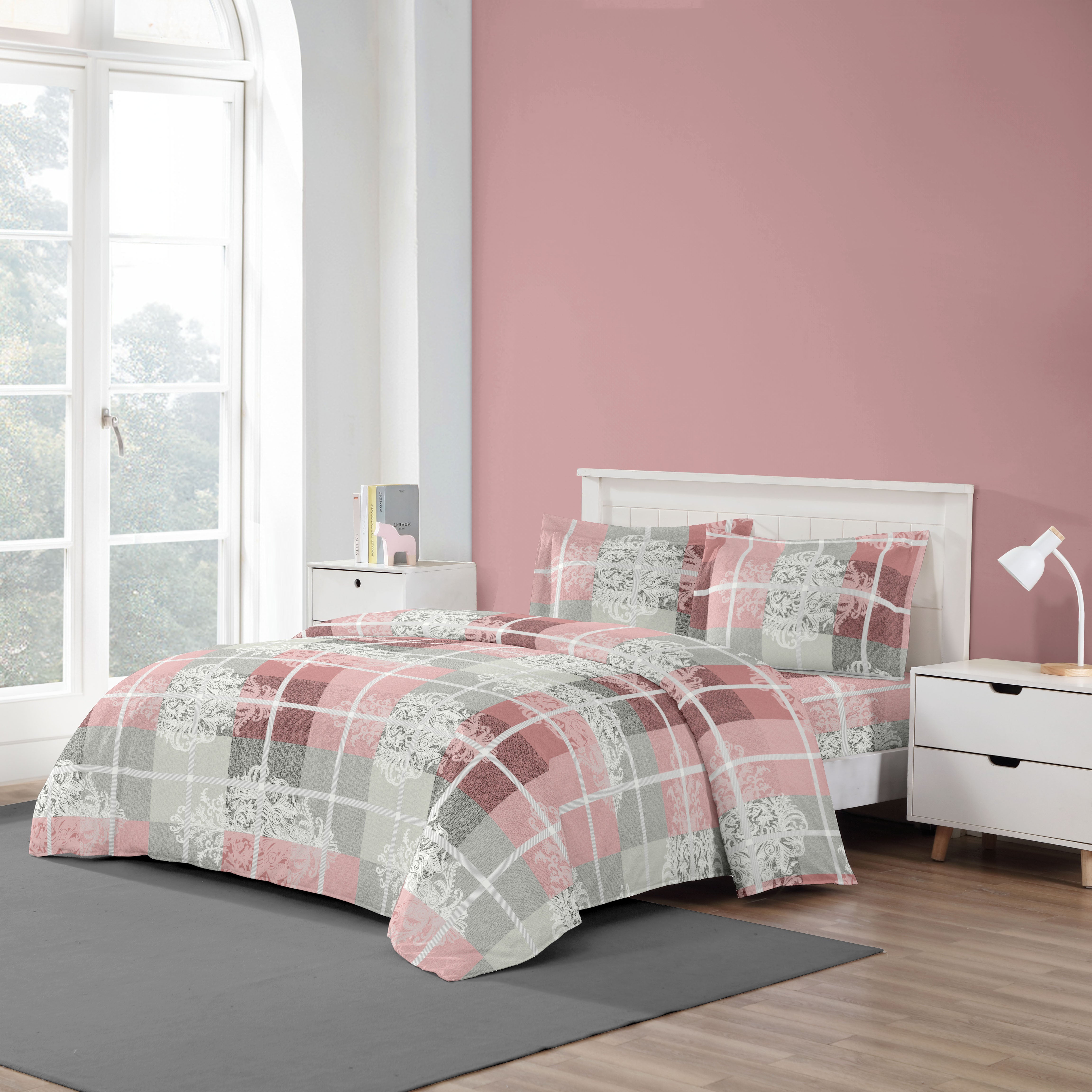 Better Bed Quality Series 180TC Casual Plaid Pink Duvet Set