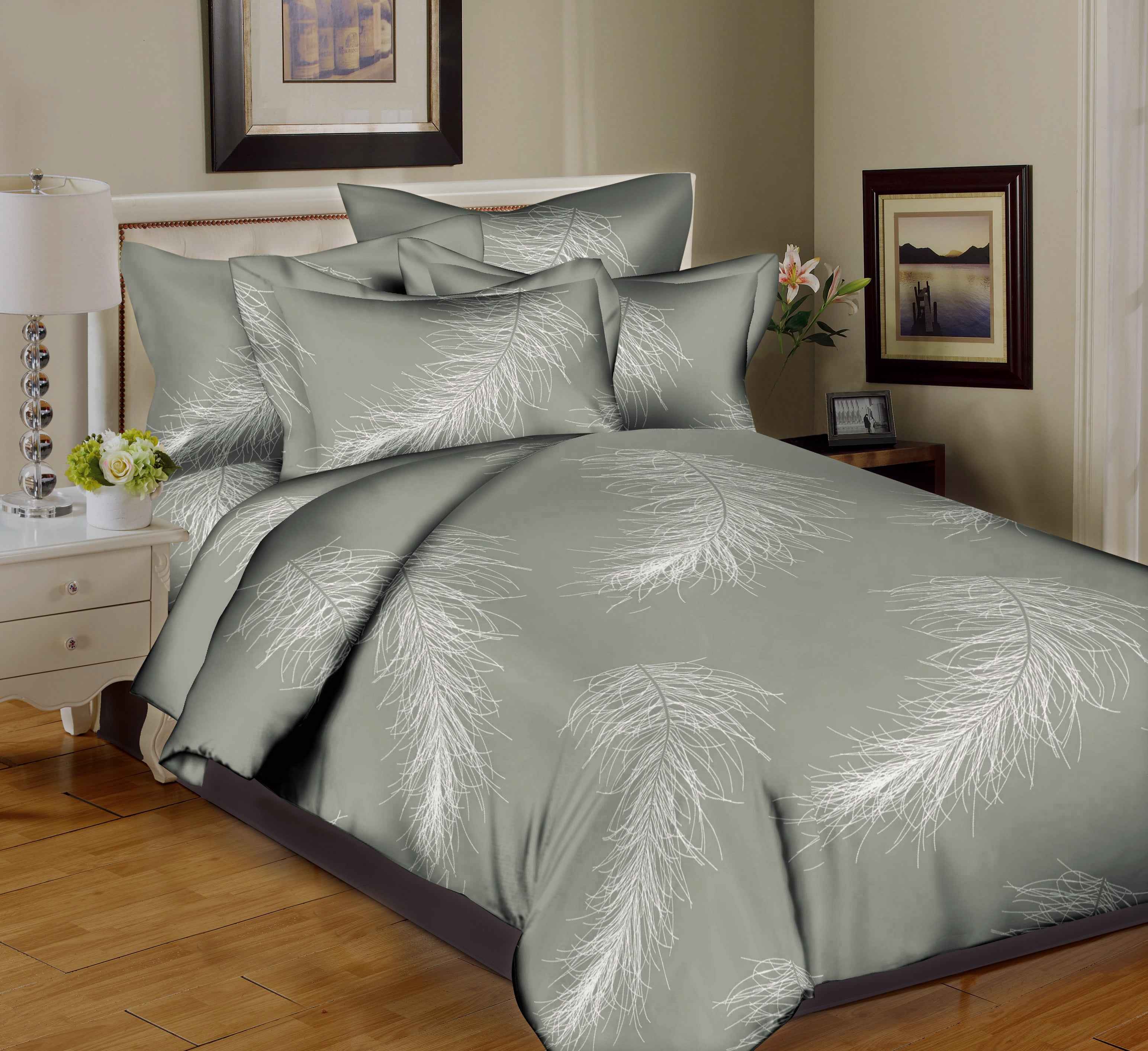 Better Bed Collection 200TC Subtle Feathers Grey Duvet Set