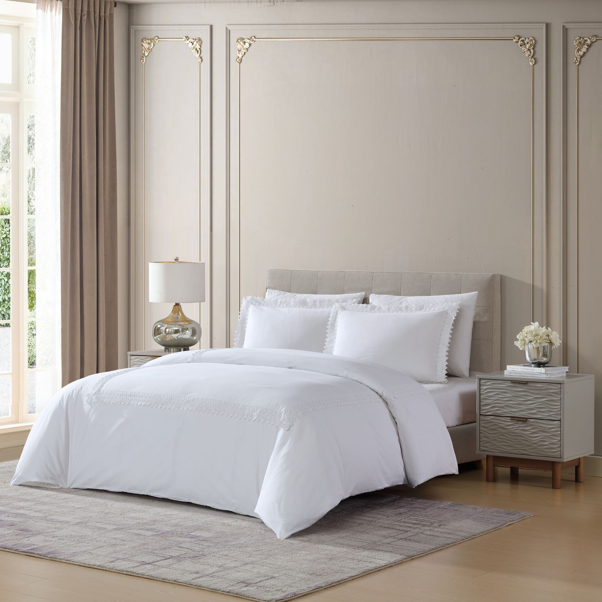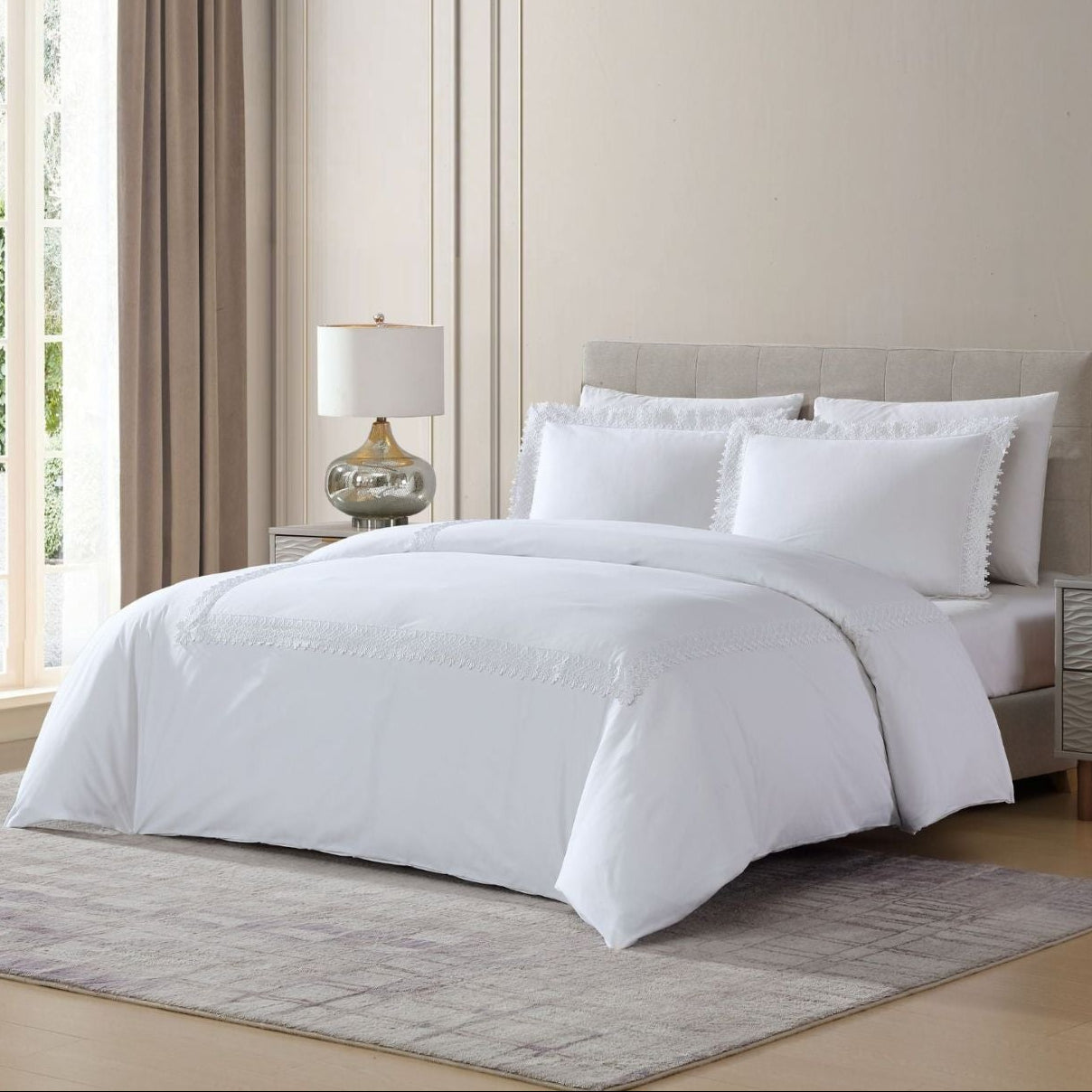 Better Bed Collection 300TC White Lace Signature Collection Duvet Set
