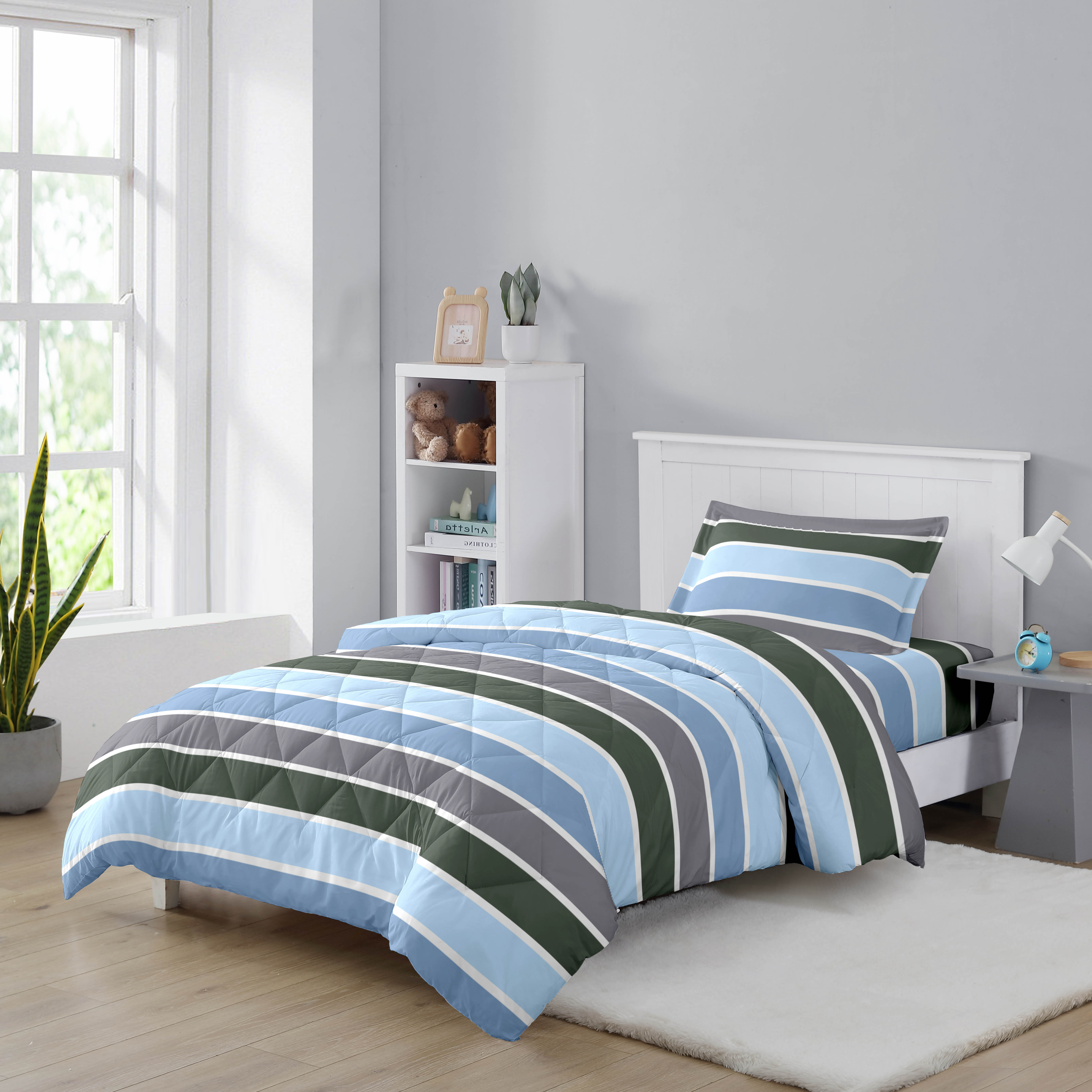 Better Bed Collection Simply Stripes Blue Bed in a Bag 3 Piece Bed Set