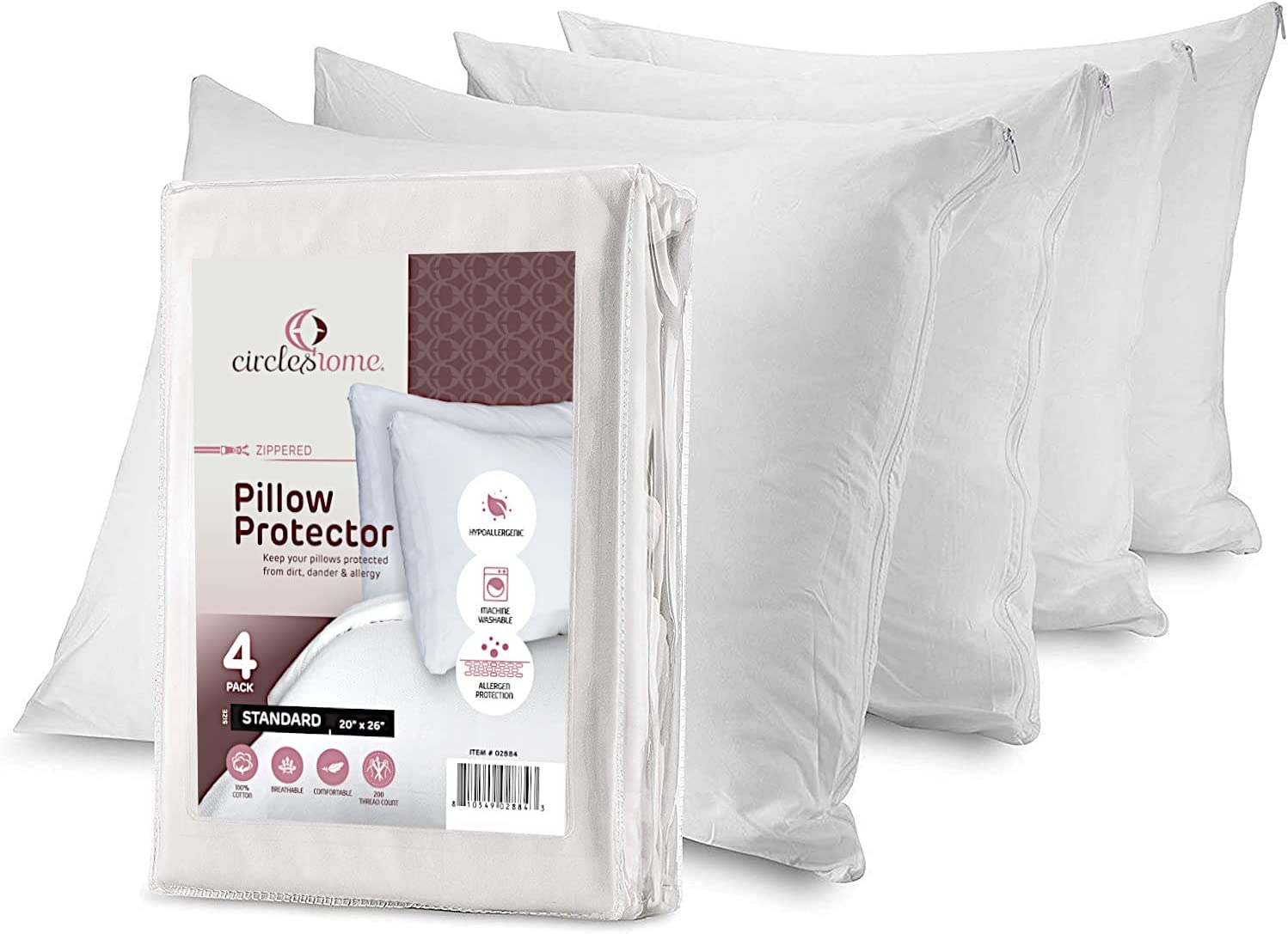 Circles Home cotton pillow protectors are the perfect blend of comfort and protection for your pillows. Crafted from high-quality 100% cotton, these pillow protectors offer a soft and breathable barrier to shield your pillows from dust, allergens, and stains.