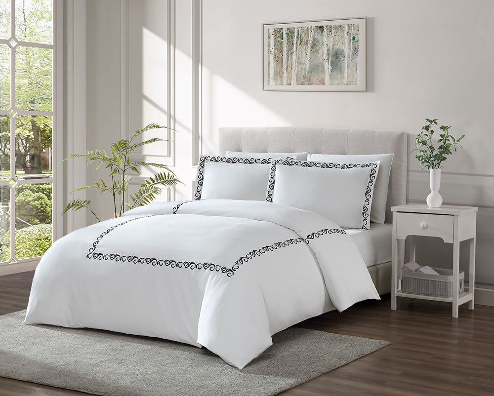 Linen Classique 320TC Embroidered Hotel Style - White/Black Duvet Set