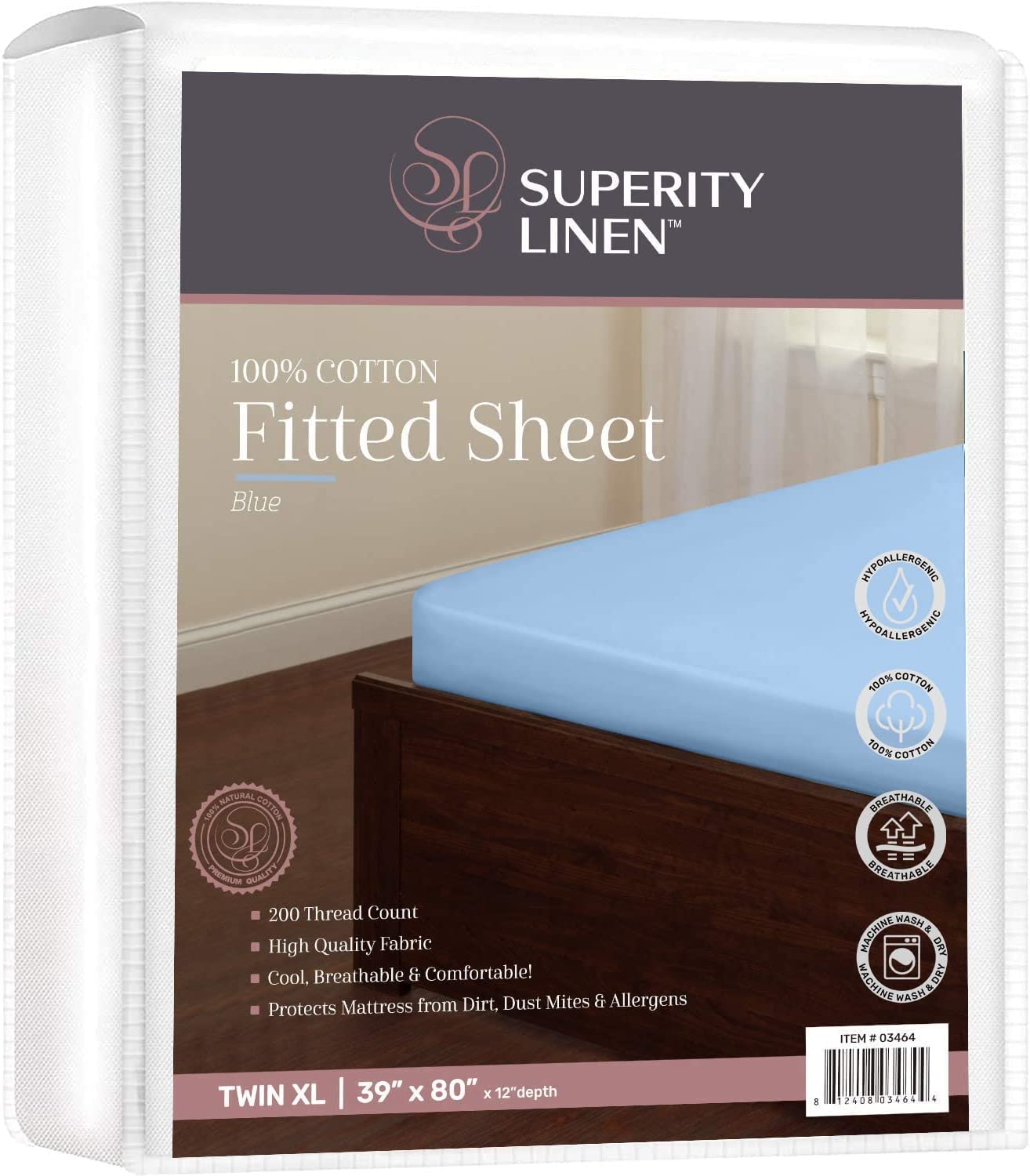 Superity Linen 100% Cotton 200TC Fitted Sheets - Blue
