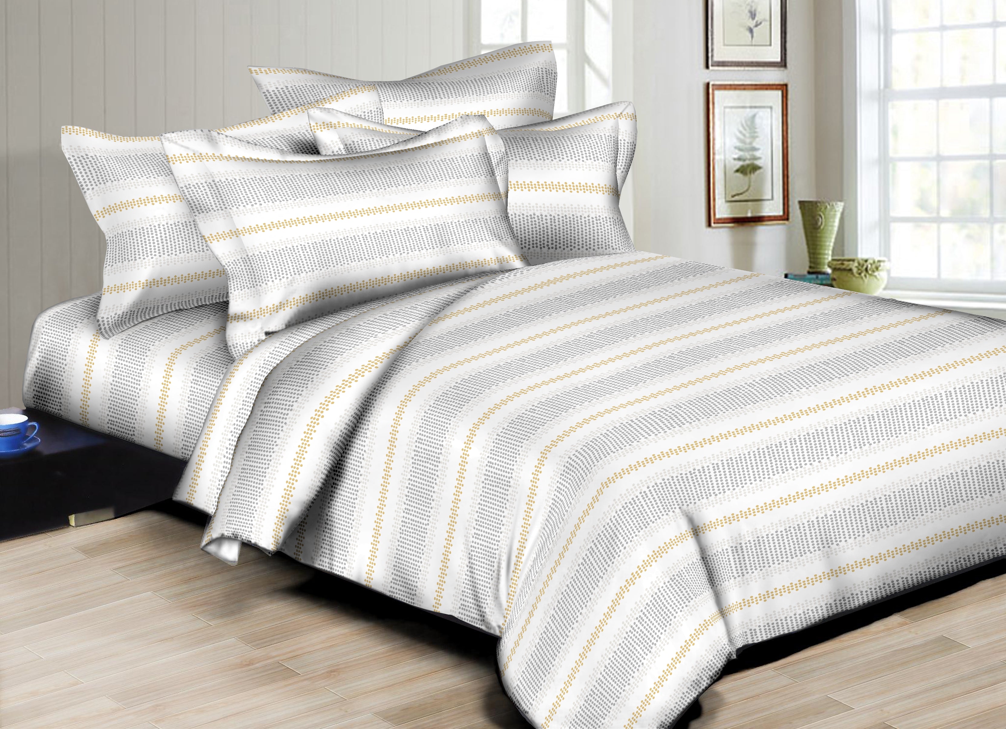Superity Linen 180TC Dotted Stripes Grey Duvet Set