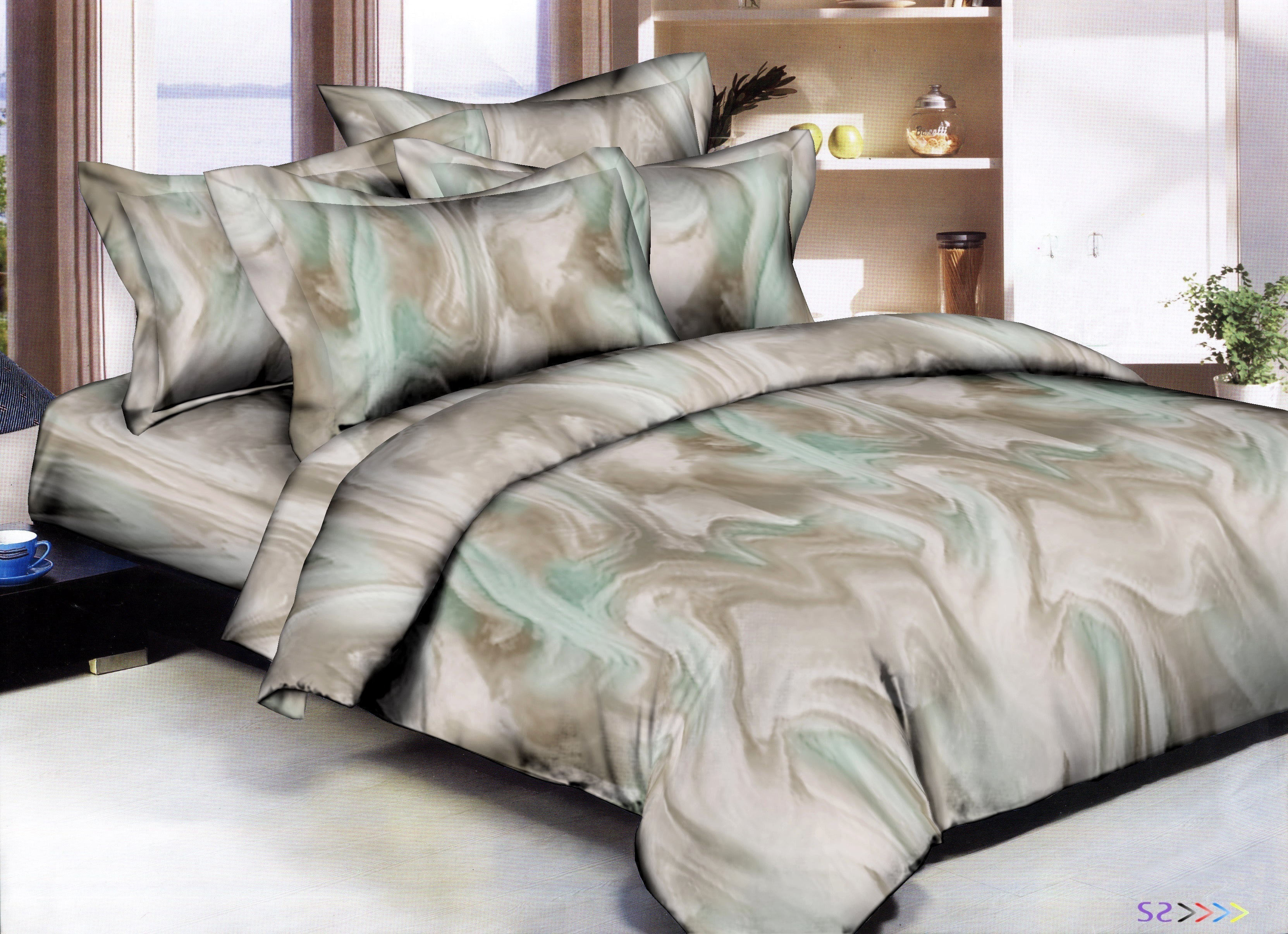 Superity Linen 300TC Marble Swirls Green Duvet Set