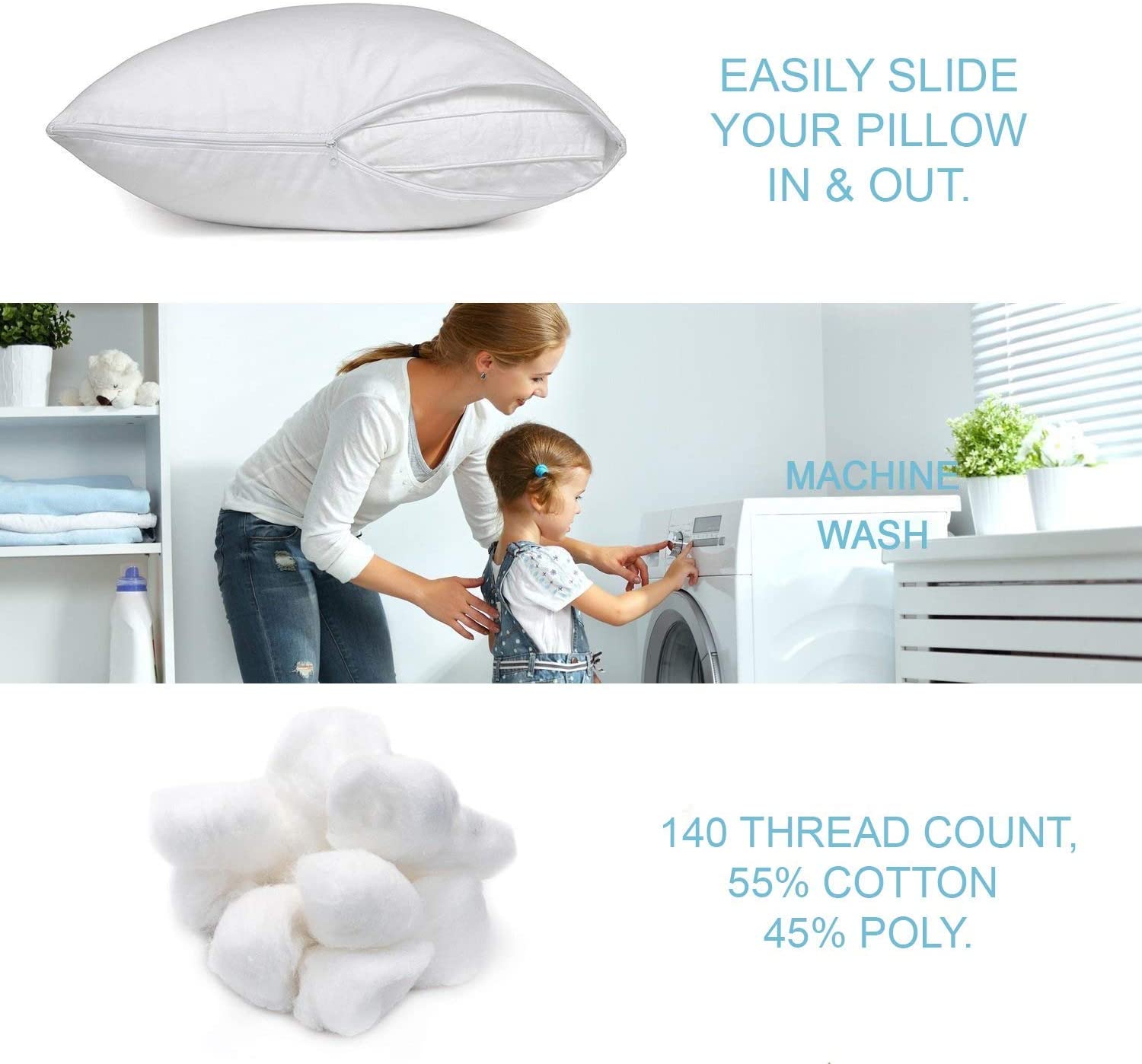 If you have a nice pillow, you want to protect it. It’s like putting a screen protector on your cell phone. Protect your investment and keep dust dander, allergens, and dirt away from your pillow with our poly/cotton pillow protectors. These pillow protectors are designed with breathability in mind by using high-quality breathable cotton and a soft polyester cotton blend that is super-soft against the skin. Don’t waste money on other plastic or crinkly products when we have what you need here.